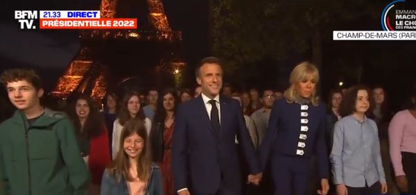 当晚,马克龙在巴黎埃菲尔铁塔前的战神广场举行胜选集会。和5年前一样,他在象征欧洲的《欢乐颂》乐曲声中走上演讲台,这一入场被法媒评价“非常具有象征意义”。上一次的胜选集会则在卢浮宫前举行。