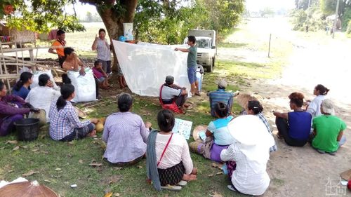 每年五六月份缅北进入雨季,蚊虫增多,上厕所的时候都拿着东西扇蚊子。我们要在雨季之前让百姓用上蚊帐。想让百姓用蚊帐,要先解释清楚,“疟疾”是通过蚊子传播的。因为河边的蚊子多,所以大家误以为是水引起了疟疾。团队里的年轻人还自制了科普海报,把蚊子画得惟妙惟肖。