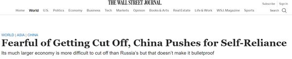 美国《华尔街日报》5月3日文章,原题:担心被切断,中国力推自主 就像那些为阻挡外部威胁而修建长城的先人,中国如今也在修筑城墙——为了让国家更加自主,俄乌战事令这一使命变得更迫切。中国已为半导体生产注入数十亿美元,储备了谷物和石油,推动金融系统的国际联系。这种推动源于担心被美欧对俄罗斯实施的那种制裁挡在西方经济之外。