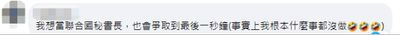 “我想当联合国秘书长,也会争取到最后一秒钟(事实上我根本什么事都没做)。”有网友写道。↓