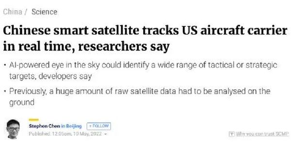 “中国人工智能卫星实时追踪美航母”?