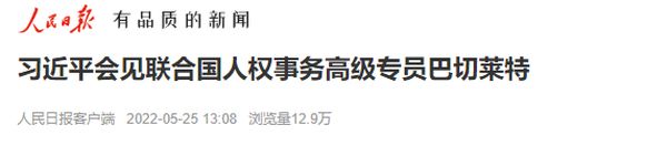 国家主席习近平5月25日在北京以视频方式会见联合国人权事务高级专员巴切莱特。