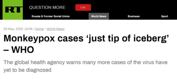 RT:世卫(官员)称,猴痘病例“只是冰山一角”