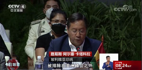 我们的兄弟国家被排除在美洲峰会之外,我们对此强烈谴责,我重申,除非所有美洲国家都受到邀请,否则我们(玻利维亚)不会参会。
