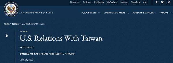 美国国务院5月5日更新网站上的“美台关系事实清单”,删除“台湾是中国的一部分”以及“不支持‘台独’”等用语,新增“基于‘与台湾关系法’、美中三个联合公报和六项保证的一个中国政策”。
