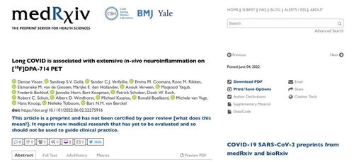 来自荷兰鹿特丹大学研究团队在论文《Long COVID is associated with extensive in-vivo neuroinflammation on [18F]DPA-714 PET》中写道,尽管在新冠感染的急性期,新冠病毒主要影响呼吸系统,但其长期影响则主要是神经系统。最常报告的症状是疲劳、嗅觉丧失、味觉障碍和认知问题。即使在初始(呼吸道)症状相对较轻的患者中,这些症状也会在感染后持续数月。按照美国CDC的数据,有五分之一的新冠患者出现了长新冠症状。然而,人们对这些使人衰弱的症状及其长期影响的病理生理学知识仍然非常缺乏。