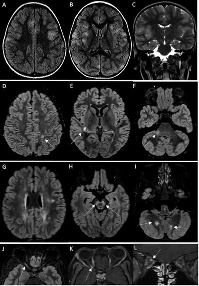 该研究确定了19名有 SARS-CoV-2 感染史并表现出多种中枢神经系统(CNS)炎症性疾病的儿童。他们的症状包括脑病、小脑共济失调、急性播散性脑脊髓炎(ADEM)、视神经脊髓炎谱系障碍 (NMOSD) 或视神经炎。
