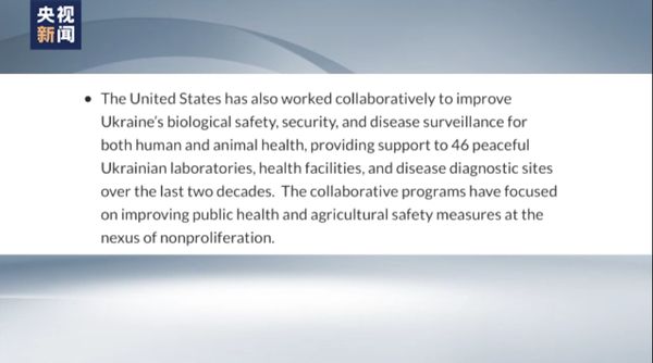 当地时间9日,美国国防部在一份文件中承认,过去20年美国政府为乌克兰境内46个实验室、卫生设施和诊断站点提供支持。……