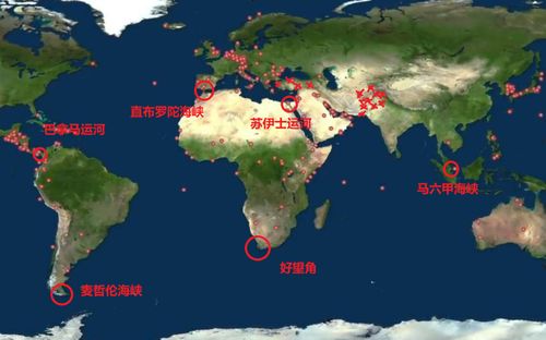红圈为世界主要海上通道,小红点为美军基地,不难发现,红圈附近总有小红点。(因为没新图,深红打叉部分,是当时有美军基地,后来被赶走了)