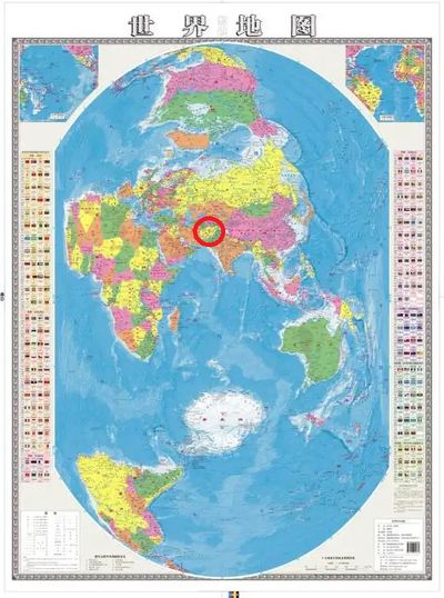 这张世界地图几乎最中央的红圈处,就是阿富汗。其战略地位之重要,可见一斑。