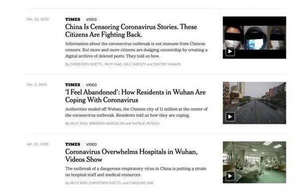 加入《纽约时报》后,肖慕漪炮制了一系列歪曲我国新冠抗疫的报道。“中国政府掩盖疫情”“民众对政府不信任”“政府打击‘吹哨人’”“疫情是中国的切尔诺贝利”……肖慕漪的报道迎合了西方反华势力对中国疫情的阴暗想象。