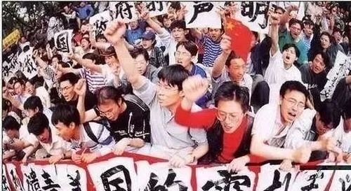 1999年,5·8炸馆事件发生后,中国民众愤怒抗议美国暴行