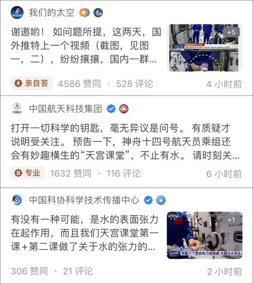 中国科协科学技术传播中心也进一步补充表示,“水的张力”知识点在过去的两节“天宫课堂”中都曾讲解实验过。