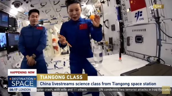 近日,中国航天员在“天宫课堂”授课的一幕,在海外社媒推特上引发争议。有外国网民称实验使用的水杯和其中装有的水都没有在失重环境下漂浮起来,质疑视频拍摄地不在太空,甚至有人借此“阴谋论”称中国根本没有发射空间站。