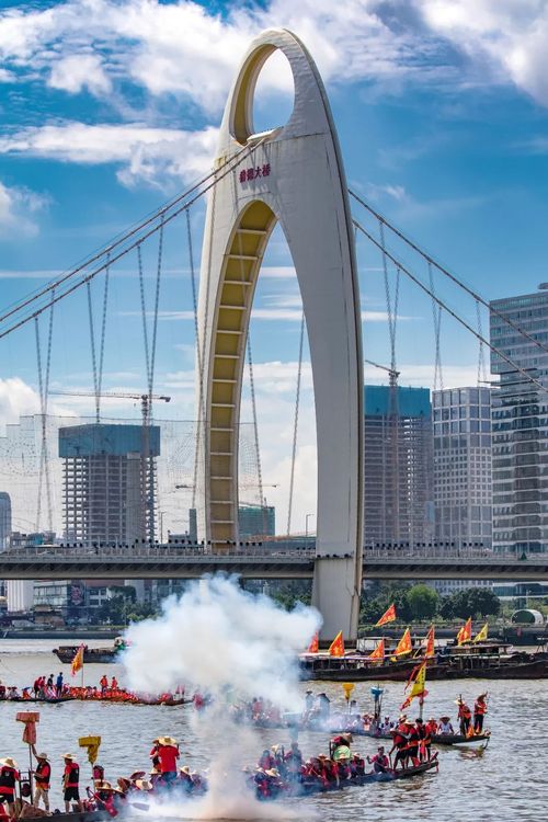 广州的阿公们把龙舟划过猎德大桥。