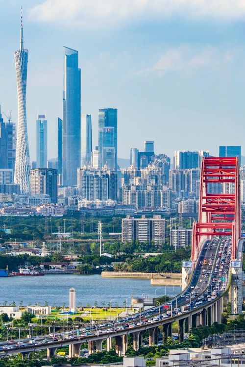 新光大桥与广州海珠区的天际线。