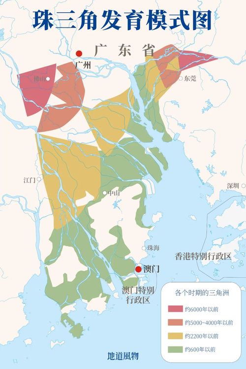 绵延不绝的横断山脉、南岭与武夷山,与南方的南海划定了如今地理分区中华南的范围,也决定了岭南地区的河流从四周向南汇聚。冲出群山的东江、西江、北江与珠江(西航道)携带大量泥沙,具备强大的造陆能力,不断把三角洲向南推进。