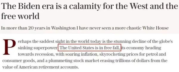环球深观察援引英国《每日电讯报》的观点指出,由于白宫的错误政策,数千万美国人变得更加贫困,全美各地的混乱失序和无政府状态不断加剧。美国公众对拜登的领导力已经失去信心,就连民主党也把他当成了一个大包袱。文章称,现在的美国对于西方世界来说是一场灾难,对于其国内民众来说则是一场噩梦。在拜登政府领导下,“美国正在经历自由落体式的下坠”。