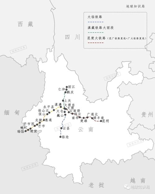 大瑞铁路,全线位于云南省境内,东起大理市,西至中缅边境城市瑞丽市,全长330公里,沿线有白、彝、回、傈僳、苗、纳西等10多个少数民族聚集区。