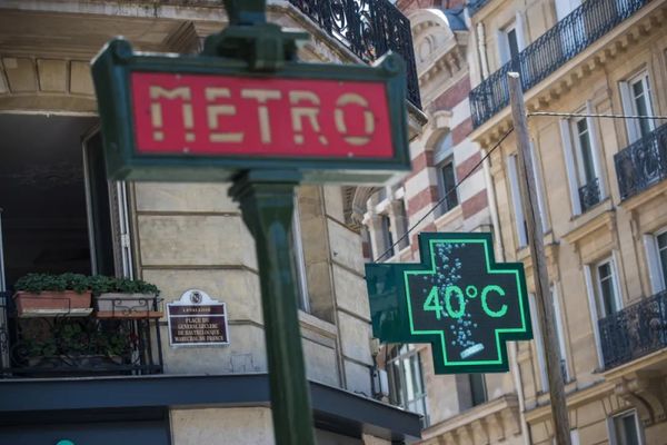 ▲7月19日,在法国巴黎附近的勒瓦卢瓦,温度计显示当日气温达到40摄氏度。新华社/欧新社