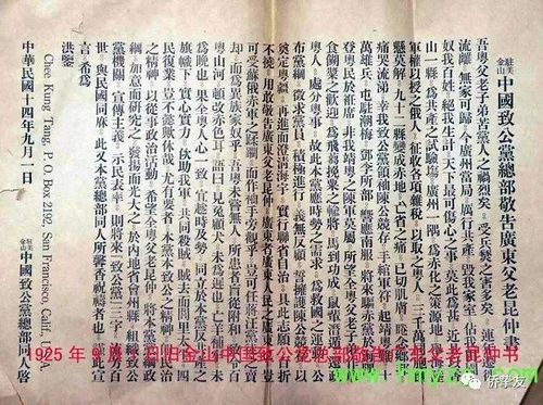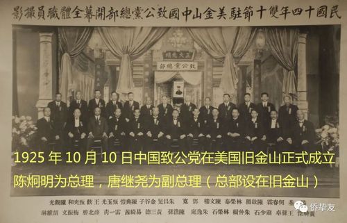 1925年10月10日,中国致公党总部在旧金山正式开幕成立,并推举陈炯明为总理,唐继尧为副总理。中国致公党总部根据陈炯明制定的“国是主张”,同时发表了《致公党同人救国主张》草案,经过大会通过后成了中国致公党“一大”纲领。此次大会共有来自各国的20多位代表参加。