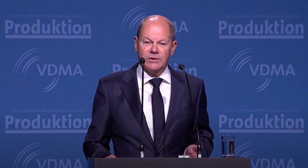 德国总理朔尔茨当地时间10月11日在出席柏林机械工程峰会时发表讲话 图自德媒