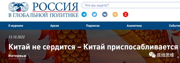 “中国没有生气,中国正在适应”,截图来自《全球事务中的俄罗斯》网站