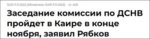 11月11日,俄罗斯副外长里亚布科夫证实了美国国务院的说法,即俄美将举行关于《新削减战略武器条约》(下称“条约”)的直接磋商。他透露,磋商将于11月底至12月初在埃及首都开罗举行,其中一个议题将是恢复“条约”的核查工作。这将是俄乌冲突爆发以来俄美之间的首次直接对话。