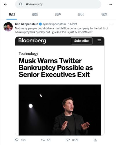 根据《纽约时报》听到的一段录音,这位51岁的推特新掌门说:“推特明年可能有大量的负现金流,破产也不是不可能的。”