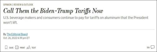 此外,尽管耶伦本人曾公开表示,特朗普时期制定的破坏性关税已经“没有战略意义”,反而正在损害美国消费者和企业的利益,但拜登政府至今仍未将其完全取消。《华尔街日报》10月26日的社论也称,所谓的“特朗普关税”如今已经可以改称为“拜登-特朗普关税”了。