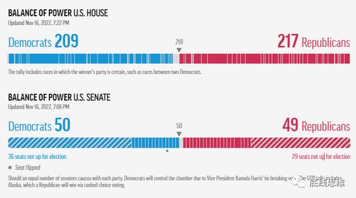 截至美国当地时间11月16日,中期选举结果(资料图/美联社)