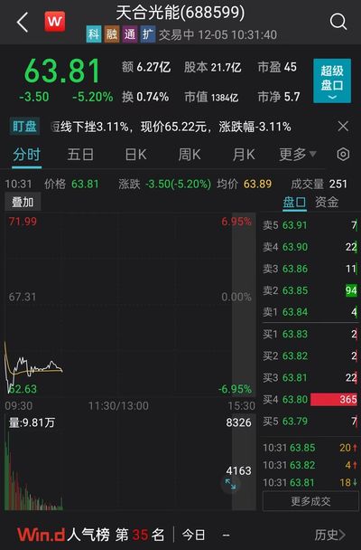 截至12月5日上午10时30分许,天合光能跌超5%