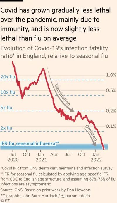 过去的一段时间里,人们听到最多的,是必须对covid-19 赶尽杀绝;否则,后遗症不堪设想。而现在,大家听到最多的,又是Covid-19 变异株奥密克戎 已经变成一个大号感冒,病死率比流感还低。