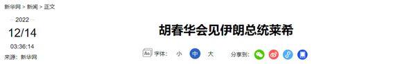 当地时间12月13日,国务院副总理胡春华在伊朗首都德黑兰会见伊总统莱希。……