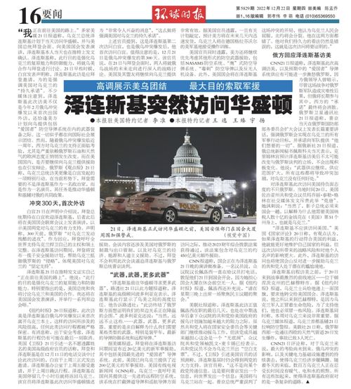 《纽约时报》20日报道称,此次访美是泽连斯基自俄乌冲突爆发以来首次离开乌克兰本土,这样的访问所涉及的风险很高,任何此类访问行程都被严格保密。有消息称,出于安全考虑,泽连斯基的行程仍有可能在最后一刻取消。英国《卫报》21日引述一名不愿透露姓名的美国高级政府官员的话称,拜登和泽连斯基是在12月11日的电话交谈中讨论此次访问的,白宫于上周三正式发出邀请。泽连斯基办公室于上周五接受邀请,并于上周日确认行程。泽连斯基在美国停留几个小时后就将返回乌克兰。该官员将泽连斯基此次访问华盛顿描述为“非常令人兴奋的消息”,“这么做将强调美国对乌克兰的持久承诺”。