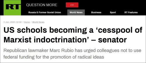 卢比奥认为,美国小学生们正被强加接触“批判性种族理论和激进的性别理论等危险的学术概念”。他还妄称,美国学校是“马克思主义灌输的污水坑”。