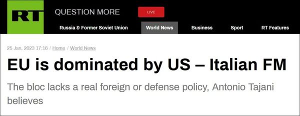 报道称,当被问及是否认为欧盟对乌军援的立场“太弱”时,塔亚尼直言:“欧洲没有真正的外交和国防政策......我们总是跟在美国人后面。”他补充称,自1954年欧洲防务共同体瓦解以来,情况一直如此。