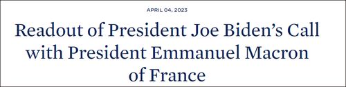 同日,白宫网站发布新闻稿称,拜登同马克龙通话,讨论了马克龙即将展开的中国之行的相关问题。他们还重申,将坚定支持乌克兰。
