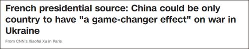“法总统府消息人士:中国是为数不多、甚至是唯一能对俄乌冲突力挽狂澜的国家”,CNN报道截图