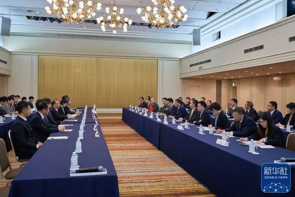 这是4月10日在日本东京拍摄的中日海洋事务高级别磋商机制第十五轮磋商会议现场。新华社记者 张笑宇 摄