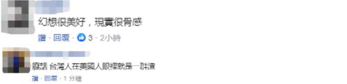 也有网友称,“幻想很美好,现实很骨感。”“台湾人在美国人眼里就是一群渣。”