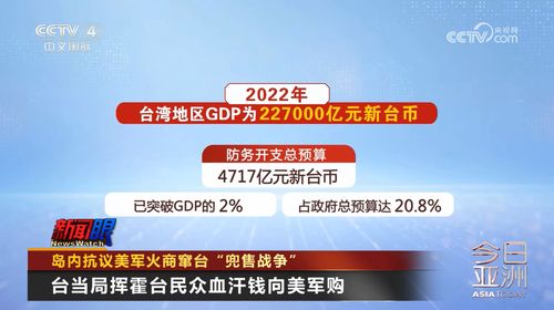 公开信息显示,2022年台湾地区GDP为227000亿元新台币,防务开支总预算为4717亿元新台币,已突破GDP的2%,占政府总预算达20.8%;而2022年17项破百亿的对美军购案,以及新式战机采购和海空战力提升两项特别预算,合计已经破10000亿元新台币。