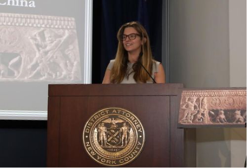 美国纽约曼哈顿区检察官高级代表德皮佐女士介绍了返还文物围屏石榻的基本情况和侦办过程,并表示这是继2021年文物返还后,纽约曼哈顿区检察官办公室第二次与中国合作进行文物返还工作,希望这次活动向社会释放明确信号,中美将继续合作积极追查、追回和归还被盗文物。
