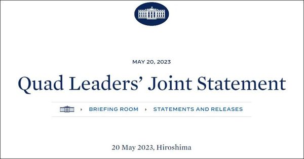 此外,这份声明还宣称,“四方安全对话”强调东盟的地区领导作用,将继续巩固四国与东盟的关系,寻求更多合作的机会。“四方安全对话”也承诺将与太平洋岛国合作,关注气候变化、海洋健康、抗灾基础设施、海上安全和财政状况等问题。