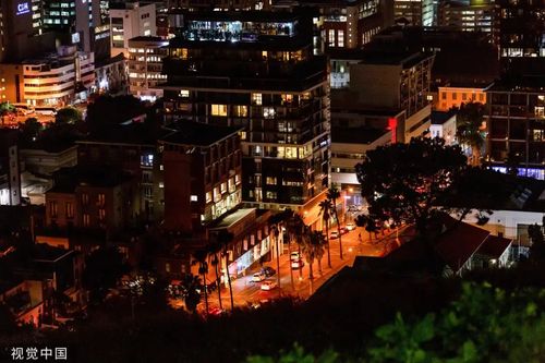 当地时间2023年6月1日,南非开普敦,夜晚的商业高层办公楼和公寓楼。南非第二大城市开普敦正在与南非国家电力公司(Eskom)进行谈判,以接管该公司服务的地铁区域的电力供应。
