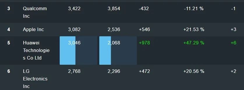 数据显示,华为去年的专利授权数量同比增长47%,至第五名 IFI Claims公司网站