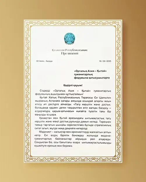 在国家主席习近平赴哈萨克斯坦阿斯塔纳出席第二届中国—中亚峰会之际,6月16日,中国中央广播电视总台与哈萨克斯坦总统广播电视综合体联合主办的2025中国—中亚人文交流活动在哈萨克斯坦总统中心举行。哈萨克斯坦总统托卡耶夫发来贺信,预祝活动取得丰硕成果,并向出席嘉宾致以诚挚问候。活动上发布《中国—中亚媒体加强合作倡议》,多档中国与中亚国家合拍精品节目落播,“中亚万里行”中国—中亚媒体联合报道活动圆满收官。包括中国与中亚五国政治、经济、文化、媒体、教育等各界知名人士在内的150余位嘉宾出席活动。