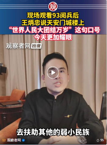 观察者网在阅兵后第一时间连线了著名台湾统派工作者、时政评论员王炳忠先生,请他讲述现场的震撼场景,畅想未来祖国发展与两岸统一。