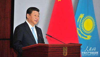 2013年9月6日,习近平在哈萨克斯坦总统纳扎尔巴耶夫陪同下步入纳扎尔巴耶夫大学会场,从纳扎尔巴耶夫手中接过大学授予的荣誉教授证书,并发表了《弘扬人民友谊 共创美好未来》的重要演讲。