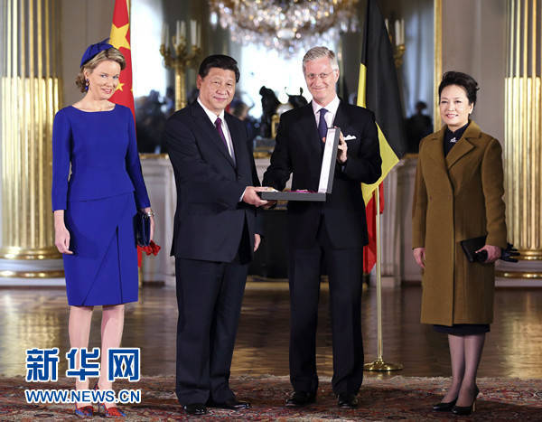 2014年3月30日习近平抵达布鲁塞尔,开始对比利时进行国事访问,并访问欧盟总部。菲利普国王向习近平授予利奥波德大绶带勋章和证书。
